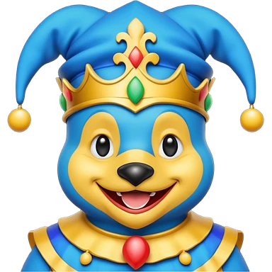 crazy colorful puppy penguin jolly joker, medieval, vintage, court jester, mac os icon, blue color emoji