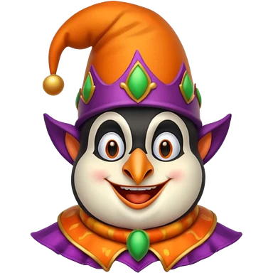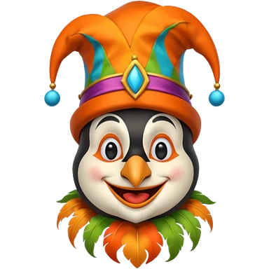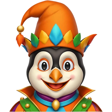 crazy funny colorful penguin jolly joker, medieval, vintage, court jester, mac os icon, orange color emoji