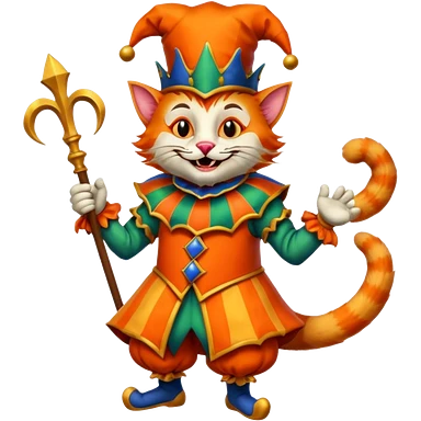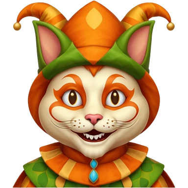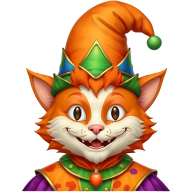 crazy funny colorful cat jolly joker, medieval, vintage, court jester, mac os icon, orange color emoji