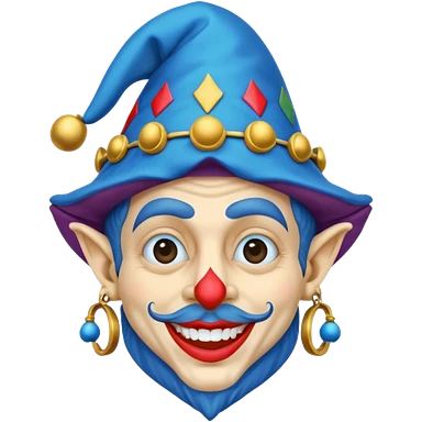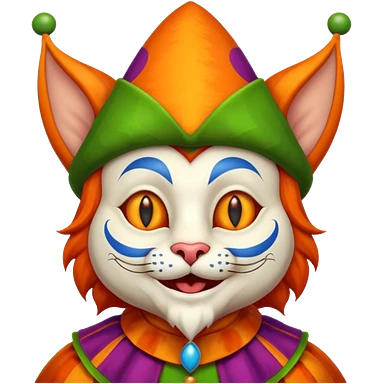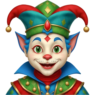 crazy funny colorful cat jolly joker, medieval, vintage, court jester, mac os icon, blue color emoji | AI Emoji Generator