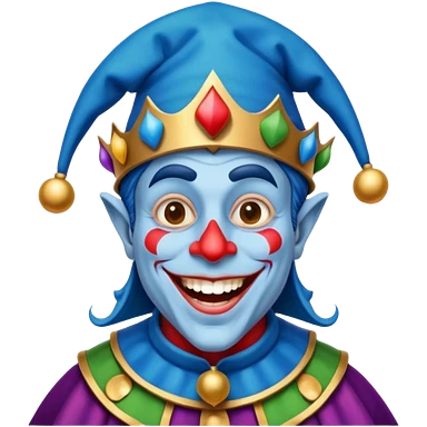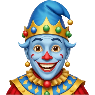 crazy funny colorful human jolly joker, medieval, vintage, court jester, mac os icon, blue color emoji