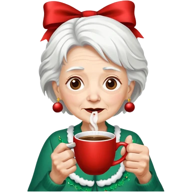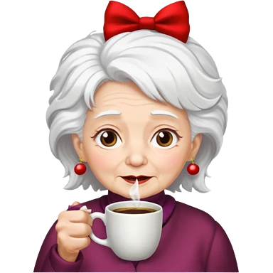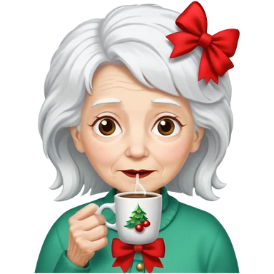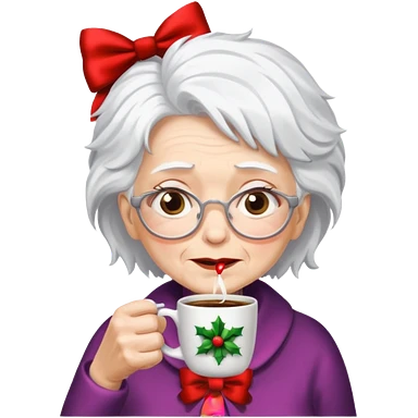 Old lady with crazy hair and christmas bow drinking coffee emoji