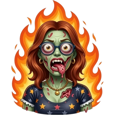 crazy zombie lady on fire eating a brain emoji | AI Emoji Generator
