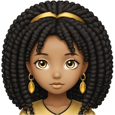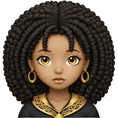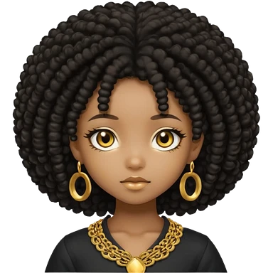 Create the same black chibi girl with long afro hair and beautiful gold eyes 20 times with different expression emoji