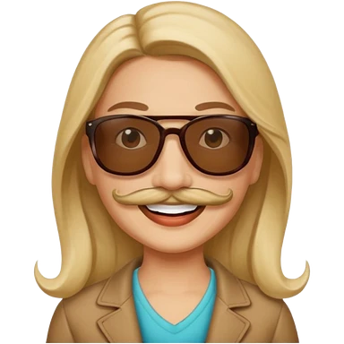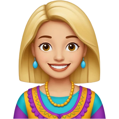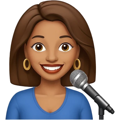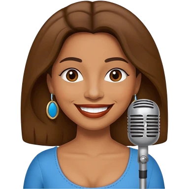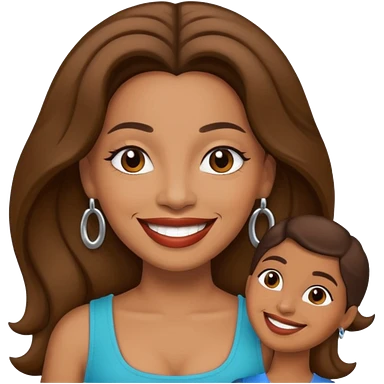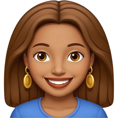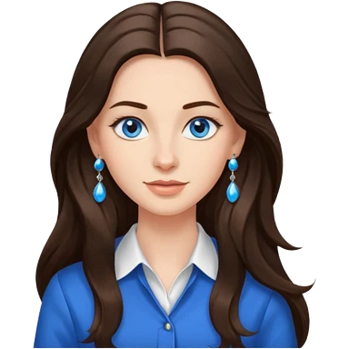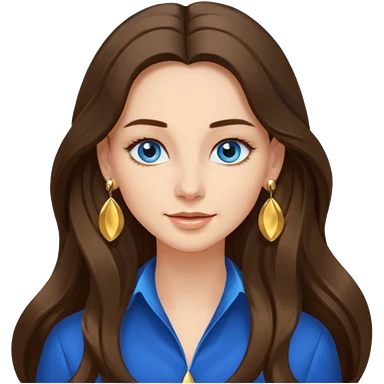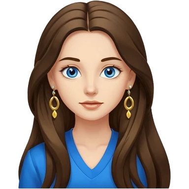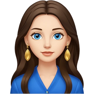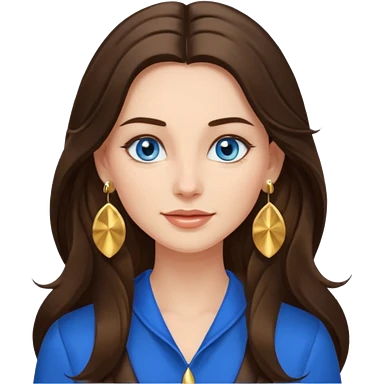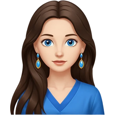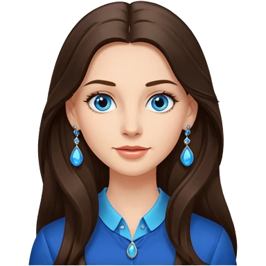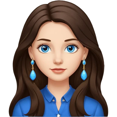 Create an emoji of a brunette with blue eyes. She should have long hair, stylish clothing, and a friendly facial expression. Add some accessories like earrings or glasses to make the look more interesting. emoji