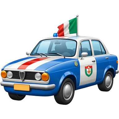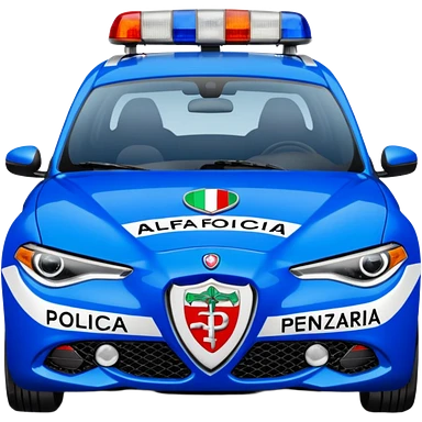 crea auto di servzio alfa romeo giulia colore nero con la scritta sul lato polizia penitenziaria e la un leopardo e la bandiera italiana emoji | AI Emoji Generator