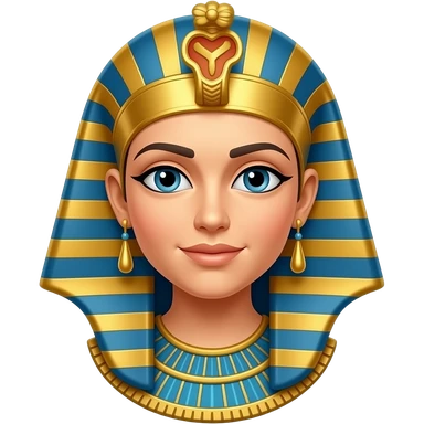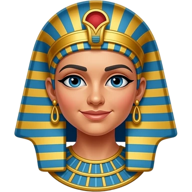 Cleopatra vestita da faraone con il cappello da faraone ma con gli occhi azzurri e i capelli lunghi biondi non troppo chiari emoji