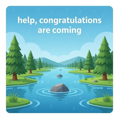 Crea un emoji con una inundacion y el texto de "socorro que vienen felicitaciones" emoji