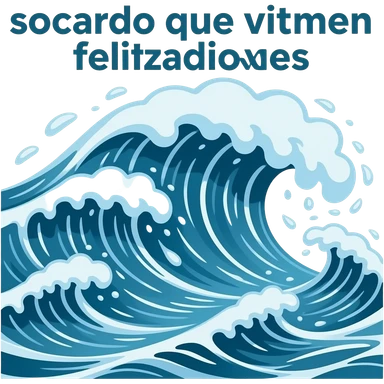 Crea un emoji con una gran inundacion con olas y el texto de "socorro que vienen felicitaciones", traducido al español emoji