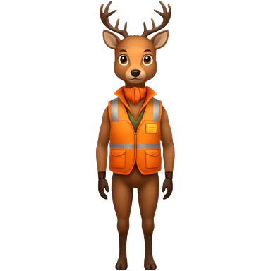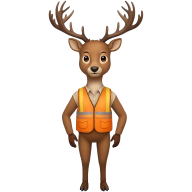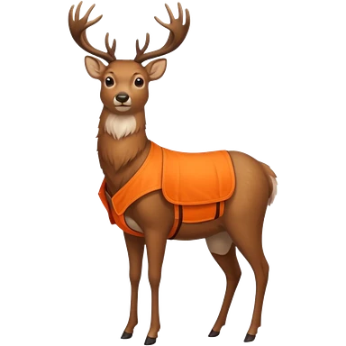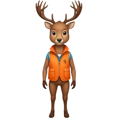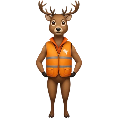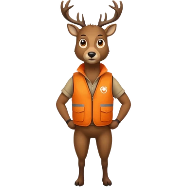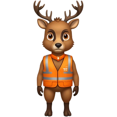 crea un venado de cuerpo completo que lleve un chaleco color naranja y que el chaleco lleve en el lado izquierdo el nombre de (telamon) emoji