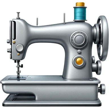 Senhora costureira com máquina de costura antiga azul turquesa emoji