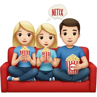Crea un emoji dove un uomo e una donna mangiano i pop corn e guardano netflix emoji