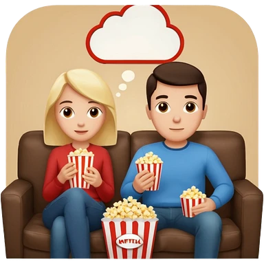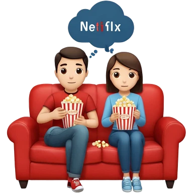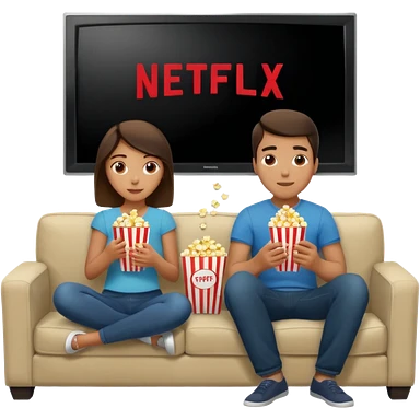 Crea un emoji dove un uomo e una donna mangiano i pop corn su un divano e guardano la tv, nella tv ci deve essere scritto netflix emoji | AI Emoji Generator