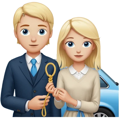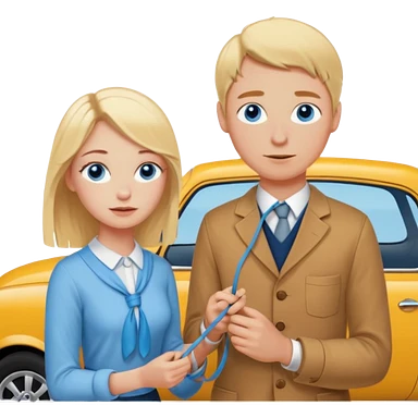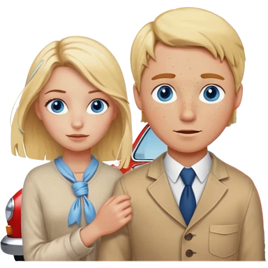 crea un emoji con esos 3 en conjunto👫🏻🪢🚘 & que la chica sea rubia y tenga pecas en la cara y tenga los ojos azules emoji
