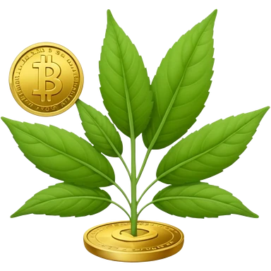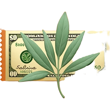 Crea un emoji que sea una hoja botánica (como un brote o una ramita de salvia) con un pequeño símbolo de dólar o una moneda de oro integrada en el centro. Estilo orgánico y profesional. emoji