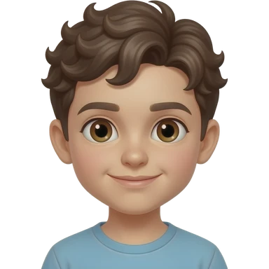 Crea un emoji de un chico de cabello rizado corto, ojos marrones, color carton y lindote emoji