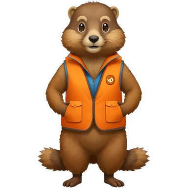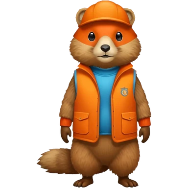 crea una marmota de cuerpo completo, que lleve un chaleco color naranja y que en el chaleco lleve el nombre (telamon) emoji