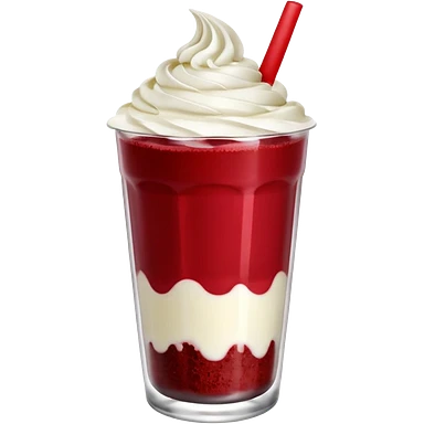 crea una bebida de red velvet con bolitas de yogurt como topping en vaso de plastico con popote emoji