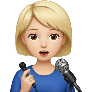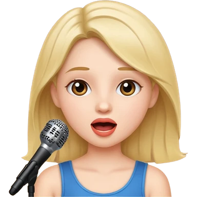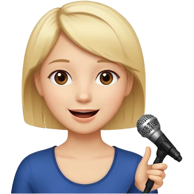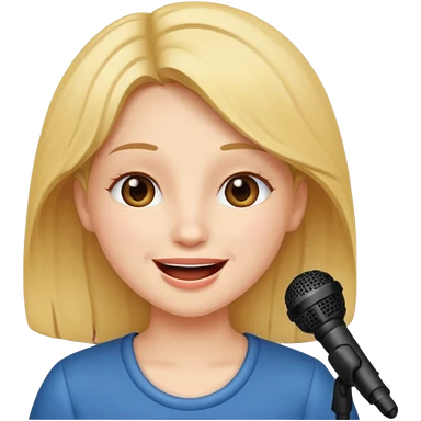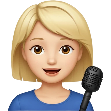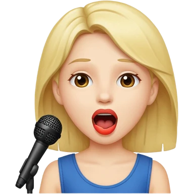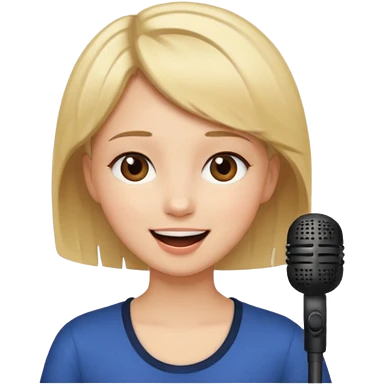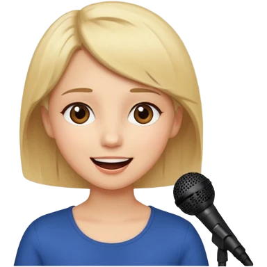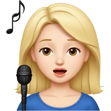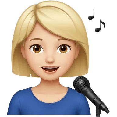 Crea una chica cantando con pelo rubio corto con ojos cafes emoji | AI Emoji Generator