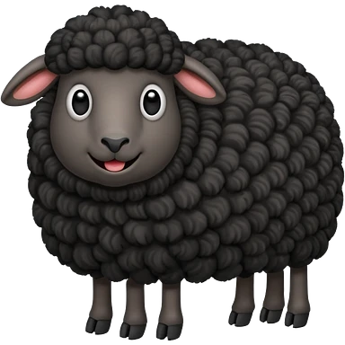Oveja negra con el cuerpo entero de lado y cara graciosa emoji