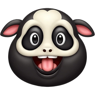 Oveja negra de cuerpo entero sacando la lengua en actitud de risas emoji