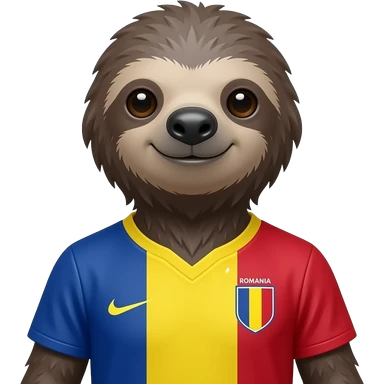 Un perezoso prehistórico con forma de persona con la camiseta de la seleccion de Rumania emoji