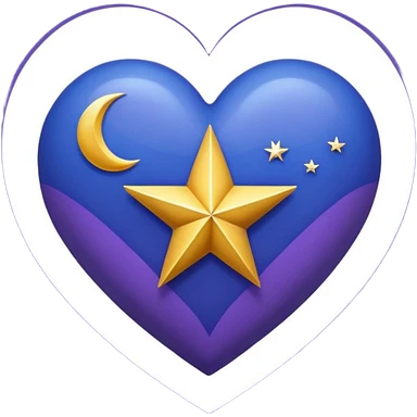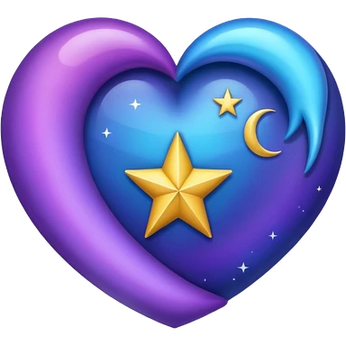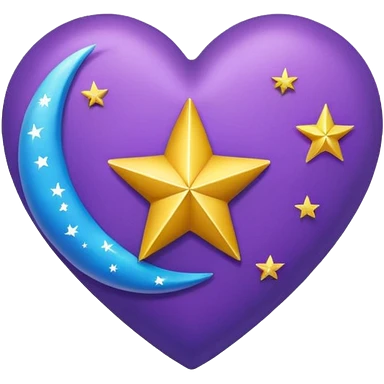 Créame un corazón con color azul y morado y dentro una estrella y una luna emoji