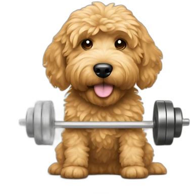 Cream coloured golden doodle lifting weights emoji | AI Emoji Generator