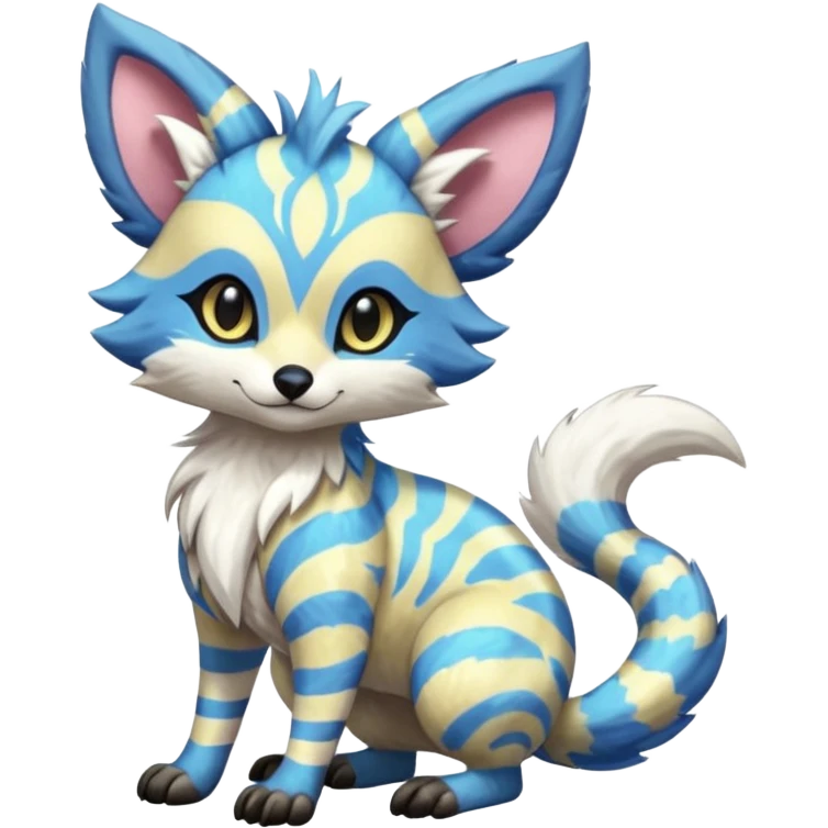 Neon-colored childish candy-themed colorful furry fluffy floofy feathery tribal marked Genet-Absol-Kyurem-Zeraora-Primagen-fusion-creature emoji