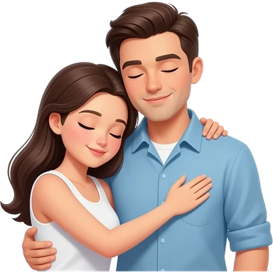 white skin Boyfriend with medium light hair and short dark brown hair girlfriend hugging emoji