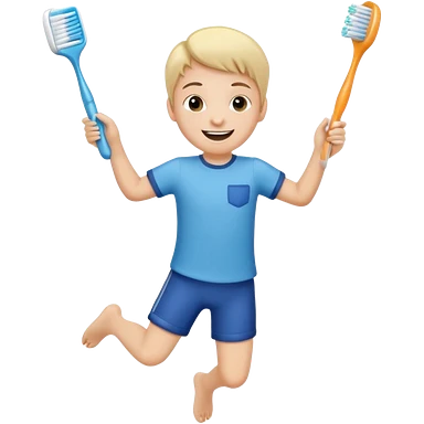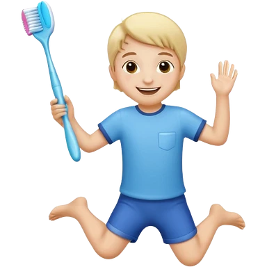 Creat an emoji for kid jumping and holding toothbrush emoji