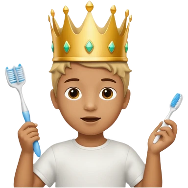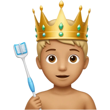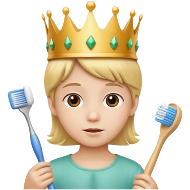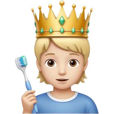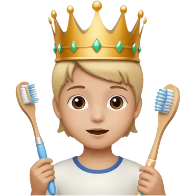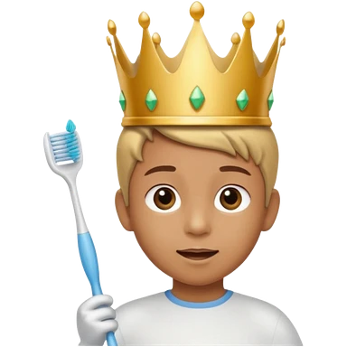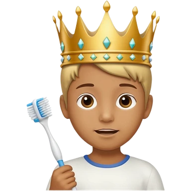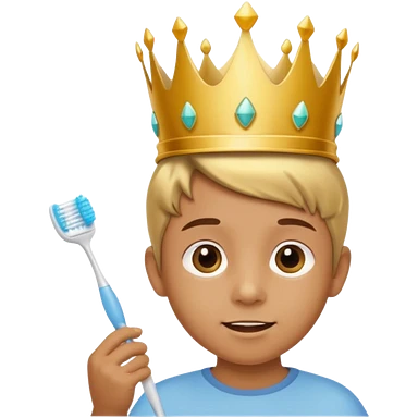 Creat an emoji for child with wearing crown holding toothbrush emoji