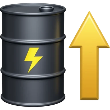 Create an emoji that shows an oil barrel, a lightning bolt, and an upward arrow. emoji