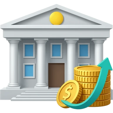 Create an emoji that shows a government building with a stack of coins and an upward arrow. emoji