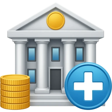 Create an emoji that shows a government building with a stack of coins and a plus sign. emoji