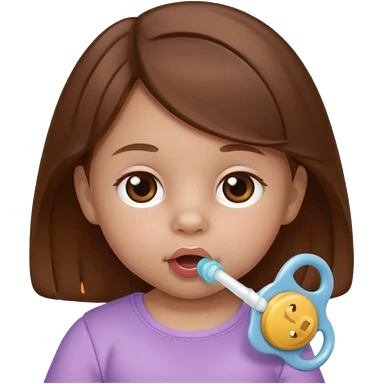 create a baby girl emoji from the 60. with brown hair and with pacifier emoji