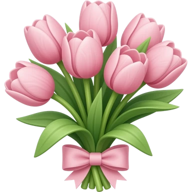 Create an bouquet with red and pink roses and tulips inside a white flower bouquet with red ribbon around it emoji