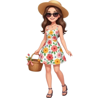 create a fashionable girl wearing sundress, sunglasses full body emoji