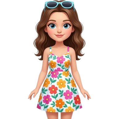 create a fashionable girl wearing sundress, sunglasses up of her head and full body emoji