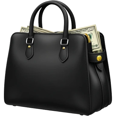 Create a black leather bag with a stack of cash inside in authentic Apple emoji style. emoji
