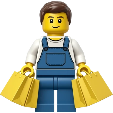 Create a lego minifig carriying shopping bags emoji