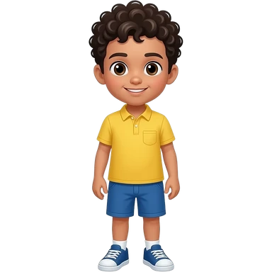 CREATE A BOY FULL BODY A YELLOW SHIRT AND BLUE SHORTS MAKE HIM HAVE CURLY SHORT BLACK HAIR AND MAKE HIM WHITE SKI\N emoji