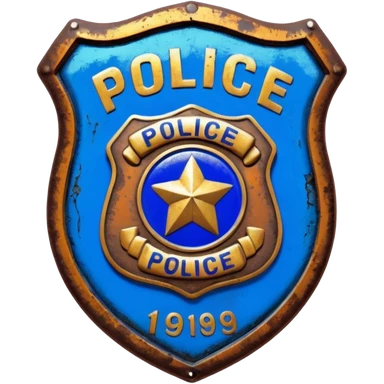 synthwave - aesthetic brilliant divine lighting, oil paint - vintage police badge rusty and broken emoji