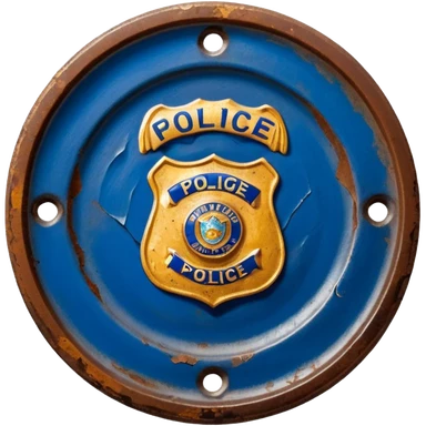 cinematic - aesthetic brilliant divine lighting, oil paint - antique police plate rusty, crumpled and broken emoji
