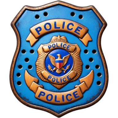 synthwave - aesthetic brilliant divine lighting, oil paint - vintage police badge rusty and perforated emoji