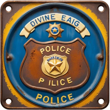solarpunk - aesthetic brilliant divine lighting, oil paint - vintage police badge rusty and perforated emoji