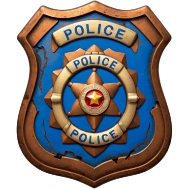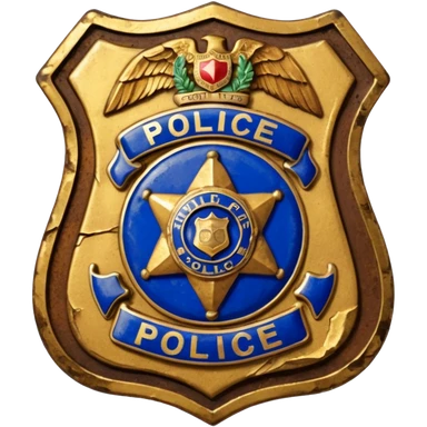 cinematic - aesthetic brilliant divine lighting, oil paint - vintage police badge rusty and broken emoji
