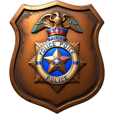 cinematic - aesthetic brilliant divine lighting, oil paint - police badge rusty and perforated emoji