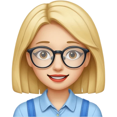 Create an iPhone-style emoji of a nerdy, skinny, white blond guy in his mid-20s with glasses and braces, standing behind his shorter adopted sister, hands on her shoulders, smiling menacingly at her. emoji