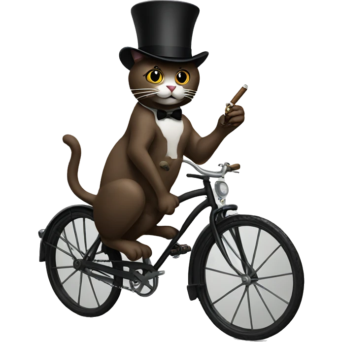 create a cat with a top hat smoking a cigar on a bike emoji | AI Emoji Generator